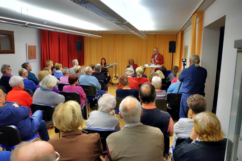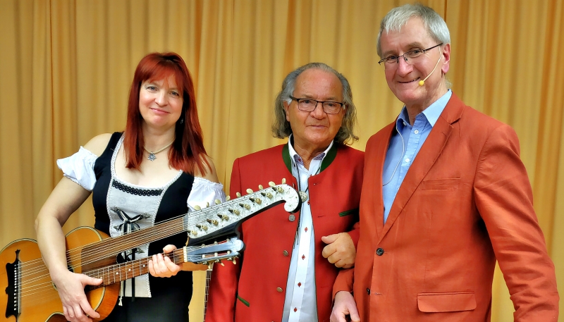Zwischen den Gesangspausen gab Martin Schiffl, der Dritte im Bunde, mit viel Hetz, Wiener Schmäh und auch mit Herz sämtliche Gedichte von Trude Marzik, Hugo Wiener, Herbert Pirker und anderen sowie eigene Wiener G´schichtln zum Besten. Zudem brachte er den zahlreichen Zuhörern den Wiener Dialekt näher, wie zum Beispiel bei der Begrüßung ist das Wienerische sehr facettenreich: “Küss die Hand die Damen - Meine Verehrung die Herren“, „griaß eich die Madln, servas die Buam“ um einige zu nennen.